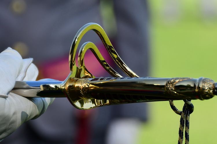 A espada representa o símbolo material da autoridade, que deve ser usada na aplicação dos mais legítimos princípios da honra cultivados e praticados ao longo da carreira de um Oficial. A espada simboliza e enaltece a aplicação dos princípios e valores caracterizadores do Oficial, no uso da autoridade militar de que é investido, para cumprir e fazer cumprir os deveres e obrigações militares, dos quais se destacam a responsabilidade, a competência, a bondade, a lealdade, a aplicação da justiça, o respeito e o amor à Pátria e a tudo que a ela diz respeito.