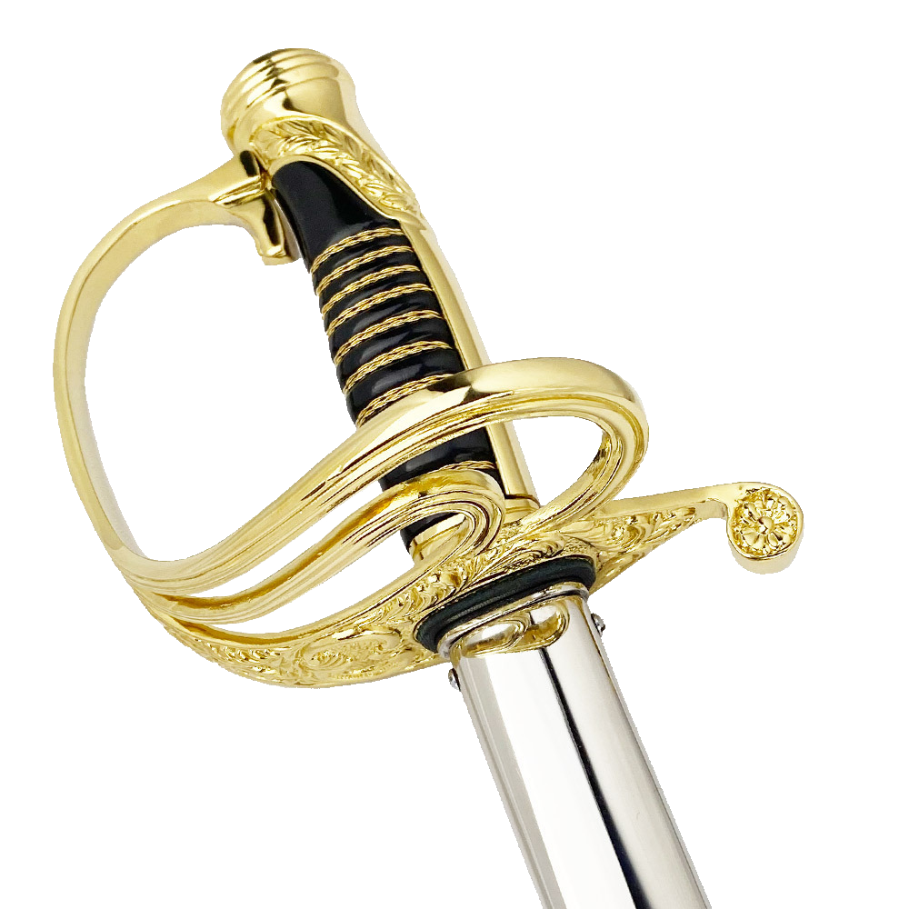 A espada simboliza e enaltece a aplicação dos princípios e valores caracterizadores do oficial, no uso da autoridade militar de que é investido, para cumprir e fazer cumprir os deveres e obrigações militares, dos quais se destacam a responsabilidade, a competência, a bondade, a lealdade, a aplicação da justiça