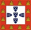 D. AFONSO III (1248-1279) Resumindo vários factos históricos, quando D. Afonso III consolida a conquista das Praças do Algarve aos Mouros, alargando as fronteiras do Reino, praticamente coincidentes com as atuais, a Bandeira Nacional é redefinida em função desses feitos, autenticando assim a posse do território algarvio, refundindo as armas Reais, colocando o Escudo Nacional sobre o do Algarve, e como este último era em campo vermelho, orlado de castelos, ficou a orla dos castelos descoberta, aparecendo em roda do Escudo Português, simbolizando a luta, a vitória, na qual foram sucessivamente implantados os castelos conquistados aos Mouros. Esta foi a terceira Bandeira Nacional. Com D. Afonso III as armas do reino receberam uma bordadura de vermelho, semeada com um número indeterminado de castelos de ouro, escolhida em lembrança do avô, D. Afonso III de Castela. A tendência de fixação de números, frequente em heráldica, levou a uma estabilização do número de besantes dos escudetes em cinco, dispostos dois, um, dois. |