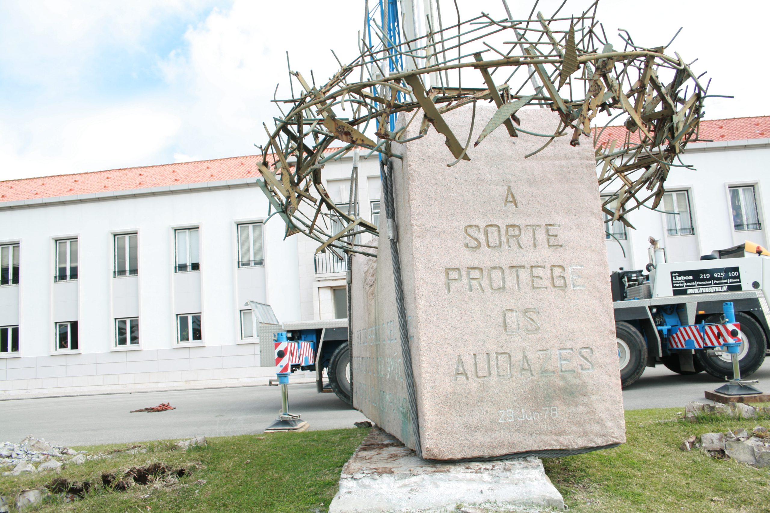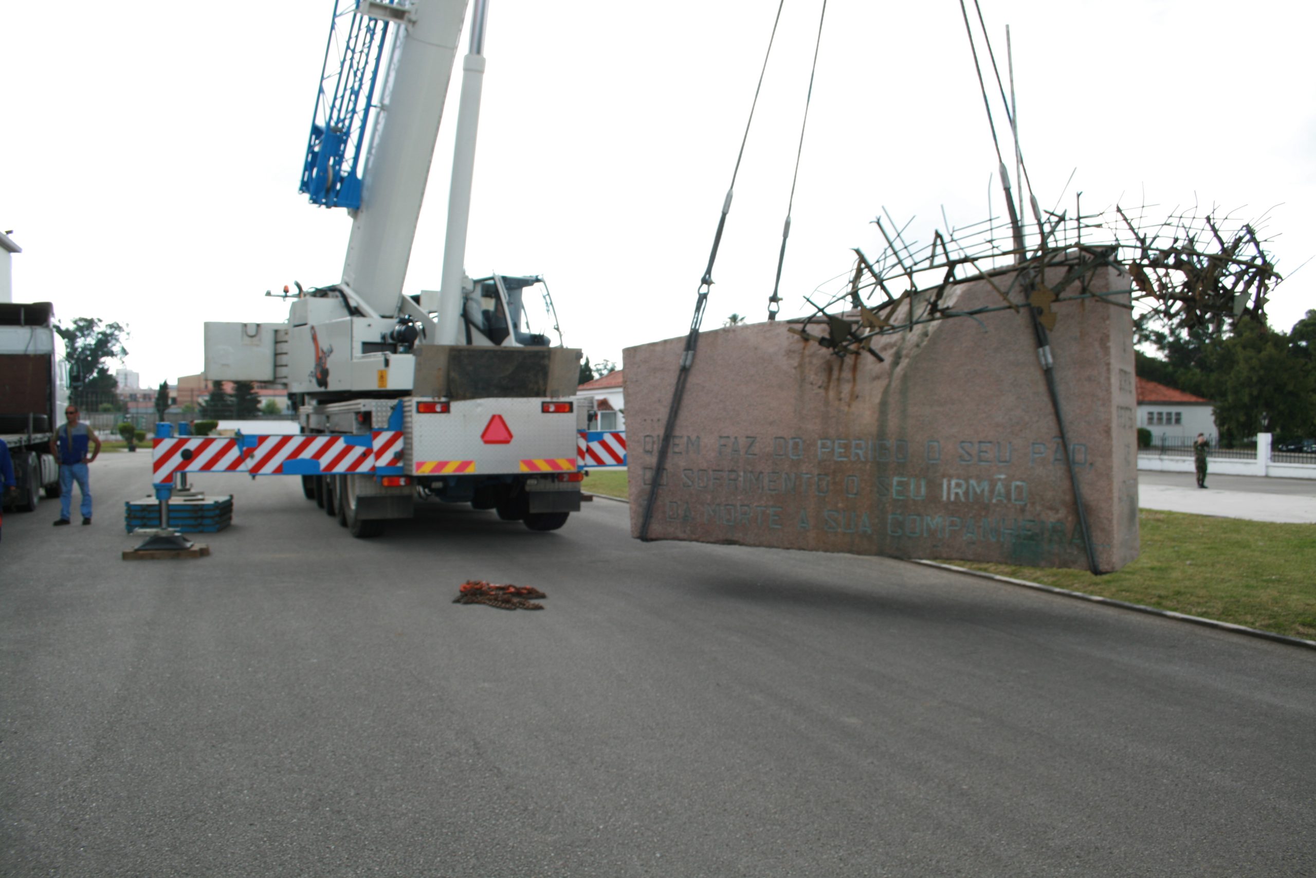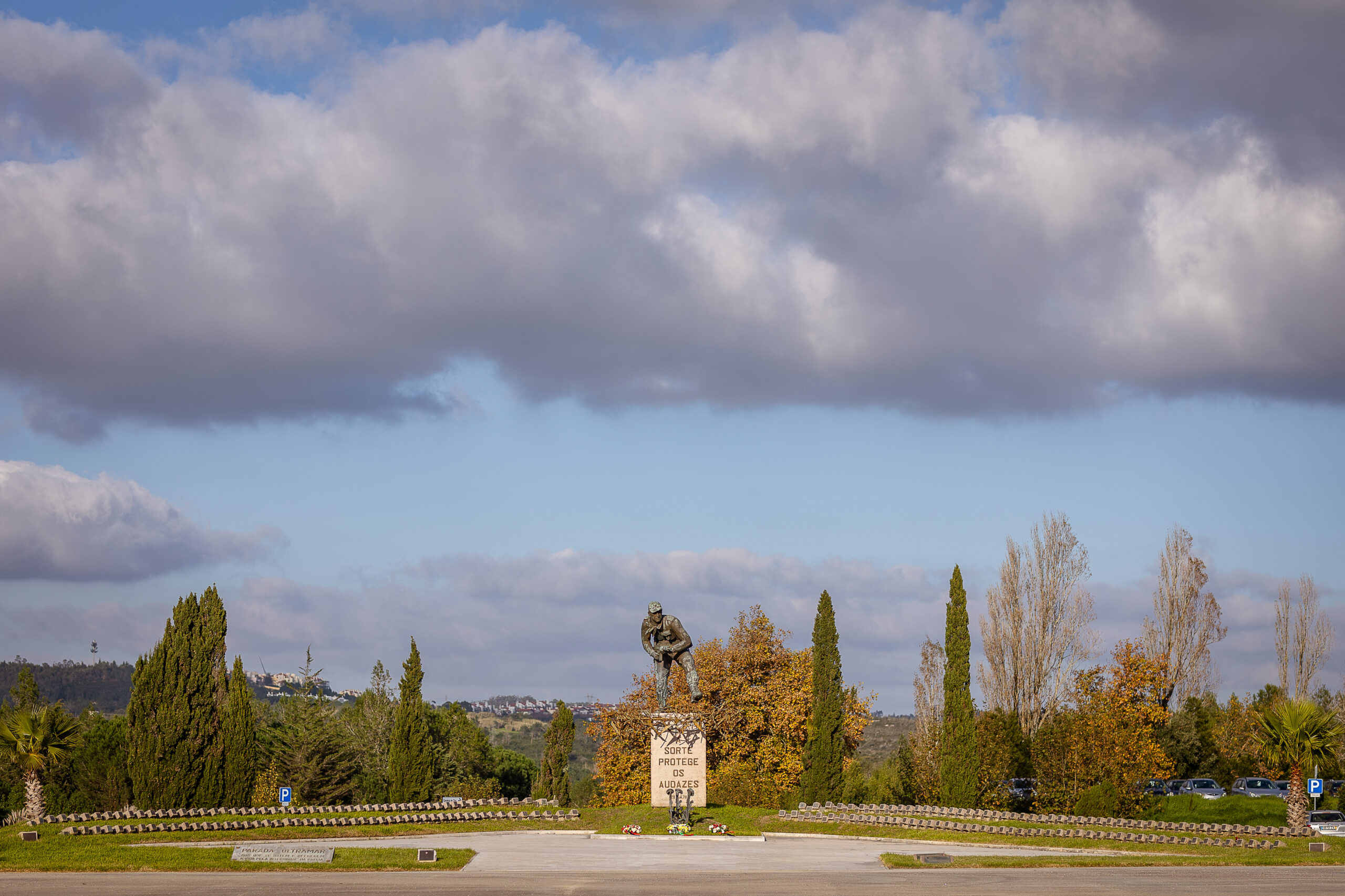 MONUMENTO AO ESFORÇO COMANDO MONUMENTO AO ESFORÇO COMANDO, um projecto que surgiu entre um encontro do Mestre Escultor Soares Branco e na altura Major Inf “Cmd” Jaime Neves, uma simbólica homenagem aos mortos na Guerra do Ultramar, eternizada num Comando de cobre martelado, em progressão cautelosa, procurando prudentemente o chão para o próximo passo, rodeado de perigos furtivos e dos nomes dos seus camaradas caídos em combate. Neste momento, o Mestre, pesaroso, lembra que, durante a execução da obra, mais alguns nomes foram acrescentados aos tantos que ali eram evocados, tombados nas terras distantes do Continente Africano. Inaugurado em 29 de Junho de 1978, no antigo Regimento de Comandos da Amadora, na Amadora. O Monumento foi transferido para o Centro de Tropas Comandos, na Carregueira. Sobre a trasladação da obra, em 31 de Maio de 2008, o Escultor maravilhou-se com o milagre da operação, de onde não resultou a mais pequena beliscadura nem acidente, considerando as suas portentosas dimensões. Número de placas que ladeiam o monumento: 406 |