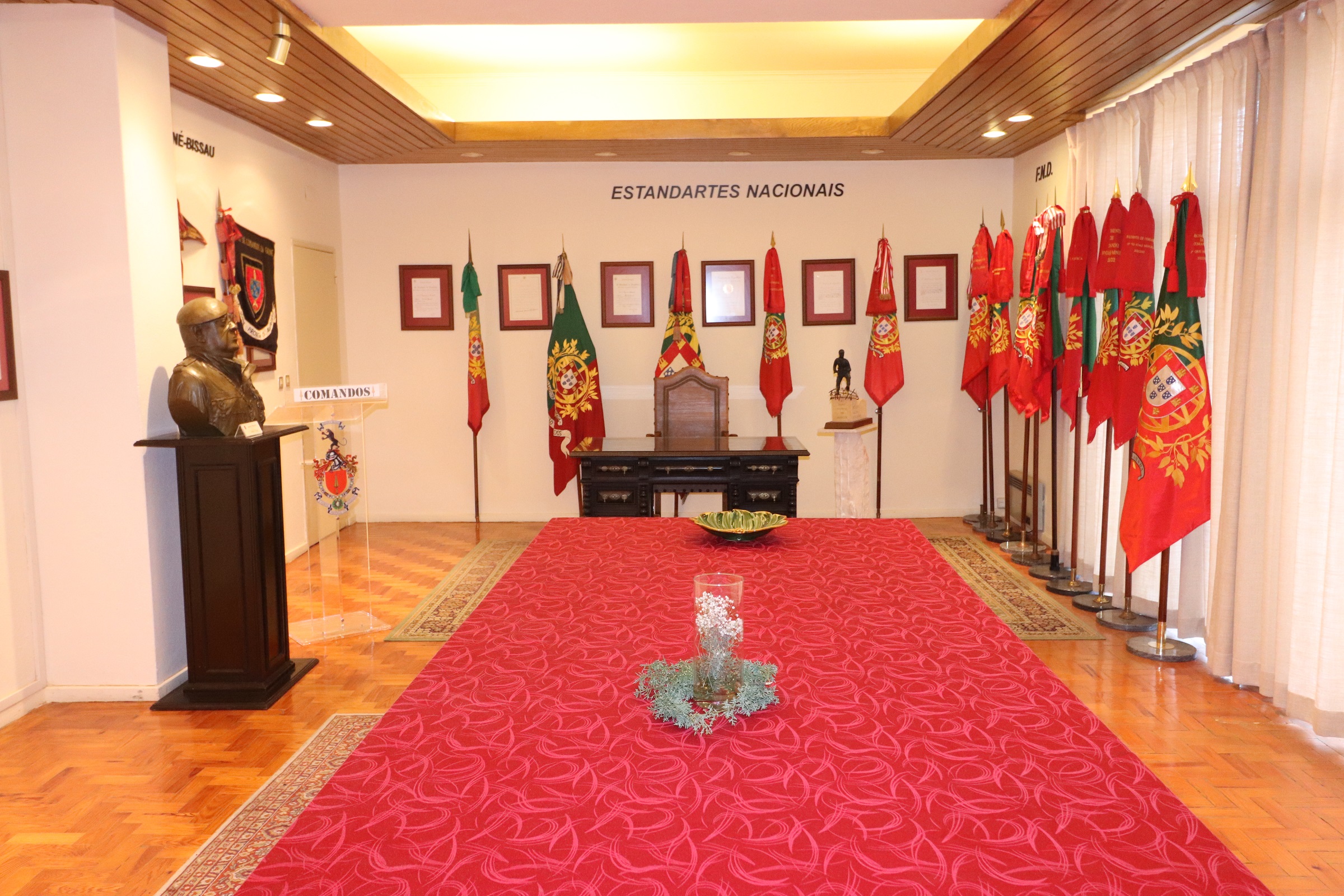 SALA DE HONRA A Sala de Honra está localizada no Edifício de Comando e contém: – Estandarte Nacional, do ano da extinção do RCmds em 1993. |
